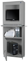 Armoire informatique monobloc en tôle10/10ème – dimensions : L 642 x P 295 x H 1673 mm – coloris Gris clair