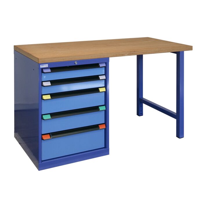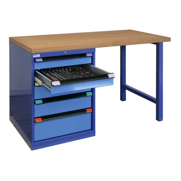 • Bloc 5 tiroirs monté à droite, interchangeable : 2 x H 100 + 2 x H 150 + 1 x H 200 mm.