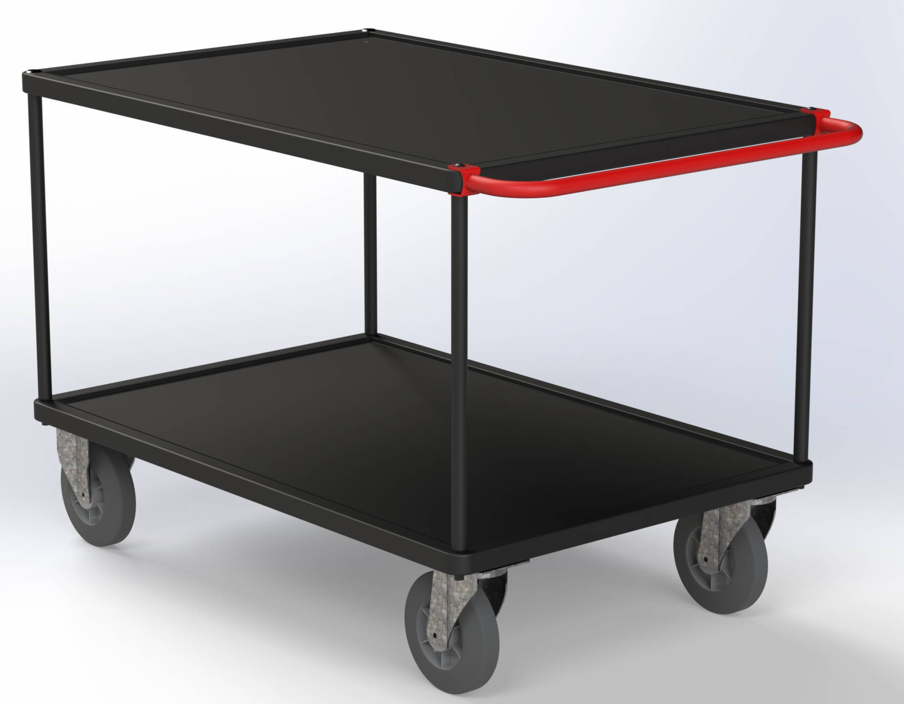 Servante 2 plateaux tôlés – Charge : 500 kg – Plateaux bacs tôles avec rebord de 10 mm – Dimensions hors tout : L x 1313 x l. 800 x H 880 mm