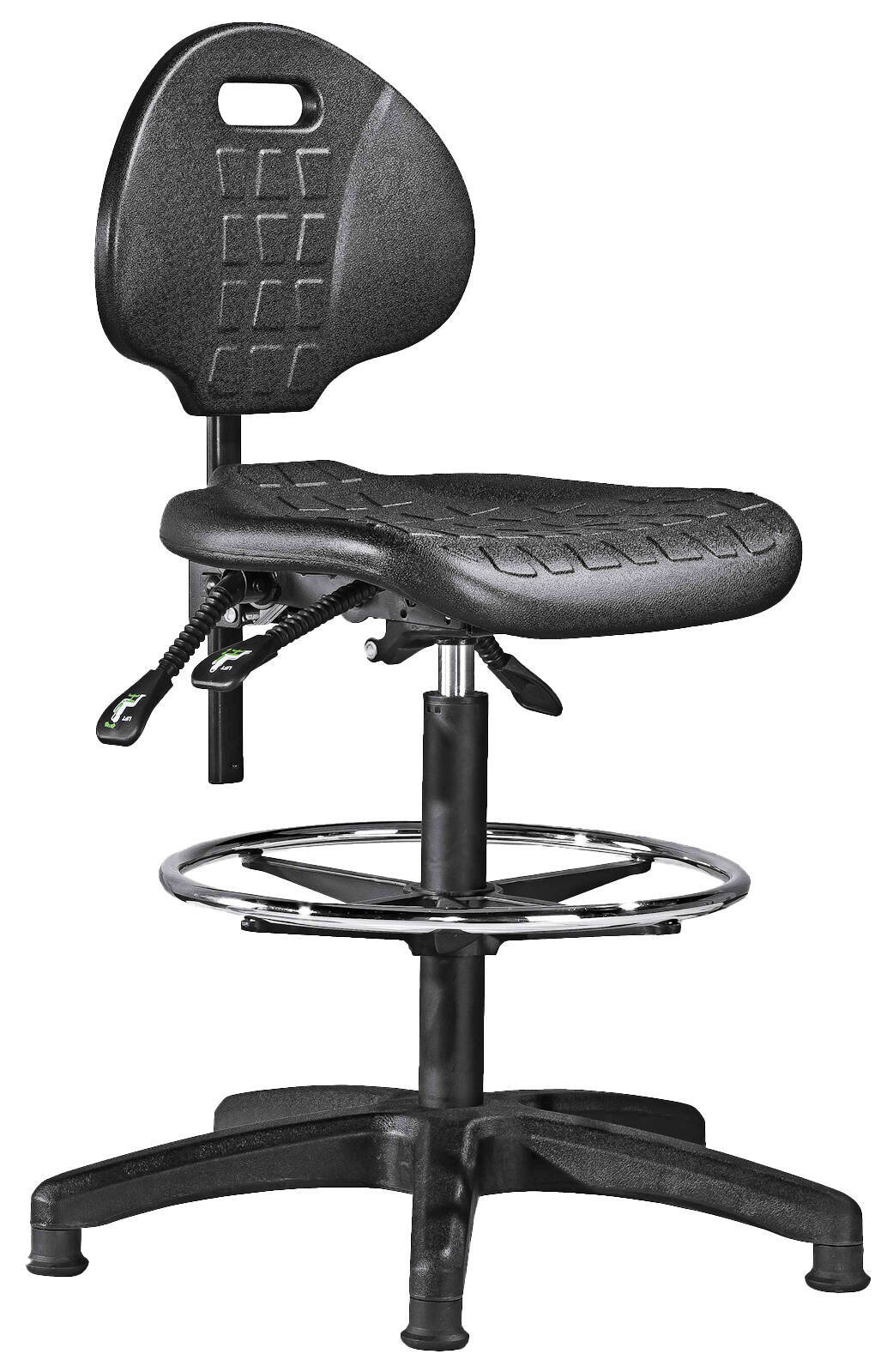 Si?ge polyur?thane asynchrone capacit? 120 kg hauteur d’assise r?glable de 560 ? 810 mm sur patins + repose pieds, lift long