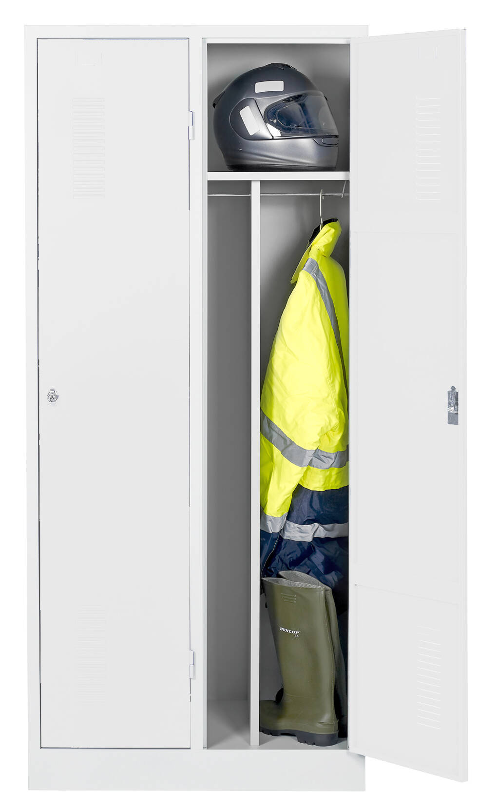 Vestiaire monobloc industrie salissante 2 cases – dimensions : L 800 x P 500 x H 1800 mm – porte grise