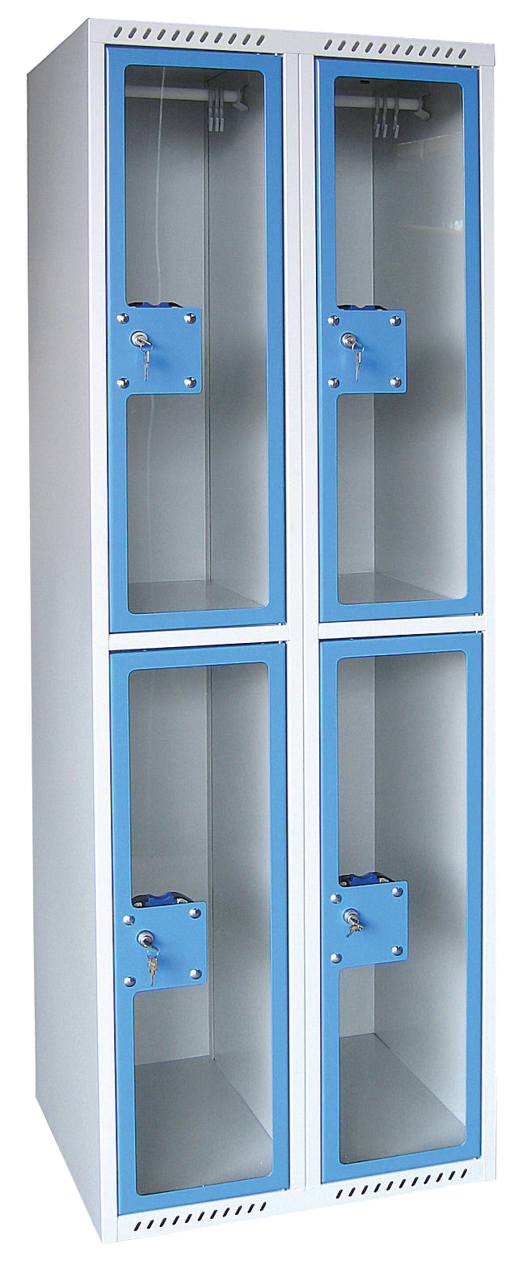 Vestiaire multicases monobloc portes plexi 2 colonnes 2 cases – dimensions : L 600 x P 500 x H 1800 mm
