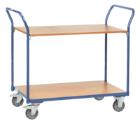 Chariot 2 plateaux bois livré démonté charge : 200 kg – dimensions : L 1180 x l. 600 x H 1020 mm