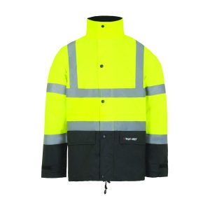 Blouson haute visibilité « LUK LIGHT » – 60% coton 40% polyester 300 g/m² – Bandes rétroréfléchissantes grises – Coloris Jaune / Marine – Tailles : XS à 4XL