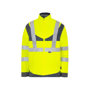 Blouson haute visibilité « LUK LIGHT » – 60% coton 40% polyester 300 g/m² – Bandes rétroréfléchissantes grises – Coloris Jaune / Blade blue – Tailles : XS à 4XL
