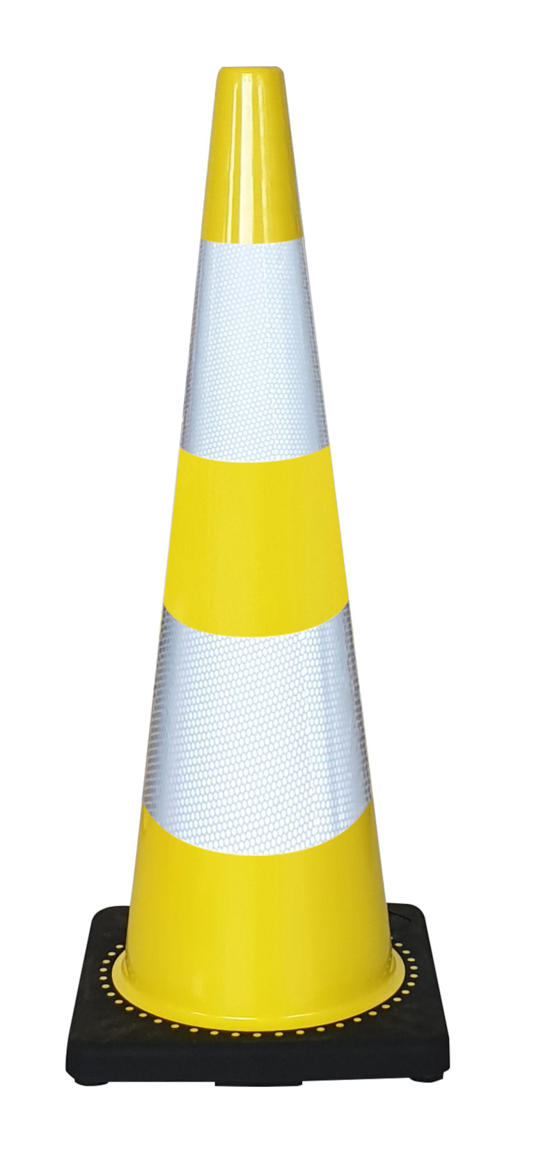 Cône de signalisation en PVC bandes réfléchissantes classe 2 hauteur 900 mm coloris jaune