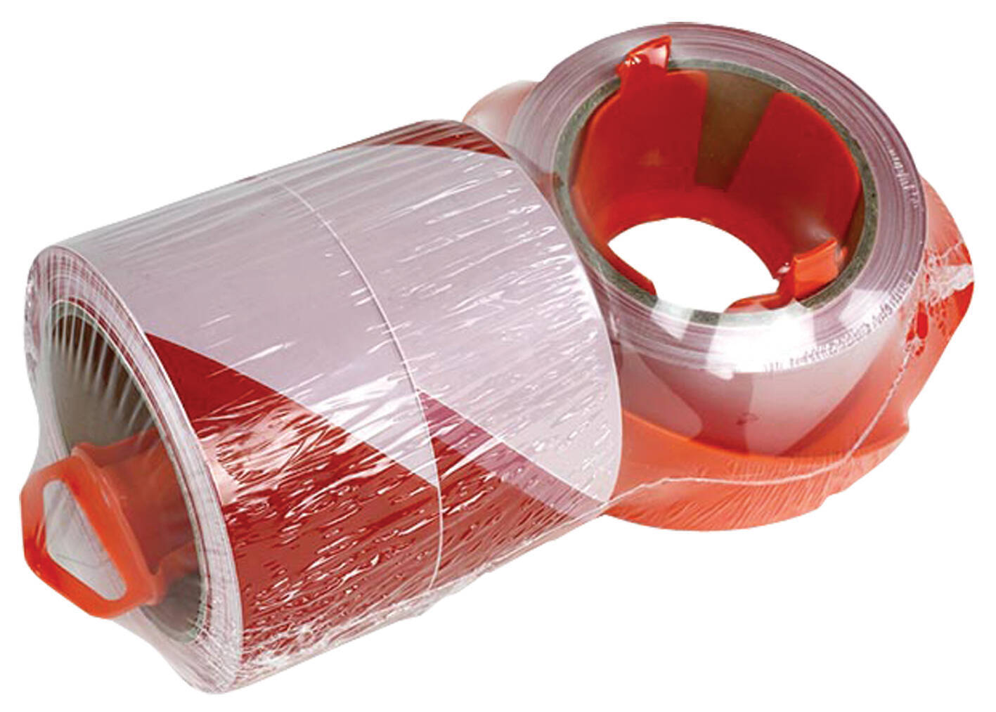 • Ruban en matière plastique rouge/blanc : l. 50 x L 100 m.