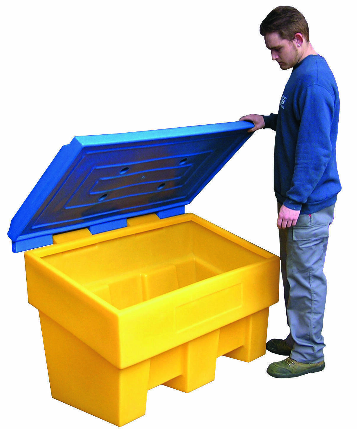 Bac multi-usages capacité 300 l. – dimensions : L 1255 x l. 750 x H 850 mm – coloris jaune – passage de fourches