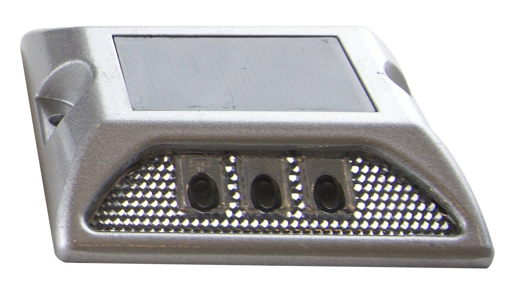 Plot solaire à led réflecteur de route boîtier en aluminium – dimensions : L 105 x l. 105 x H 25 mm – coloris blanc