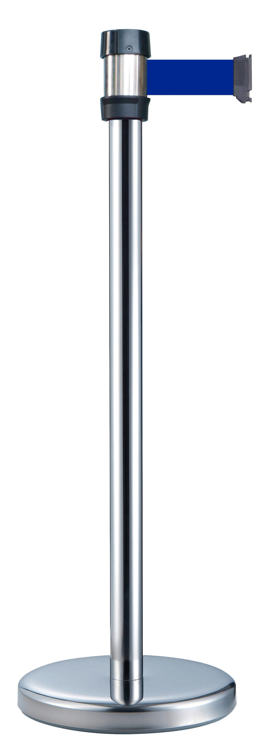 Poteau chrom? ? sangle ? 50 x H 980 mm – sangle coloris bleu dimensions : l. 50 x L 2000 mm