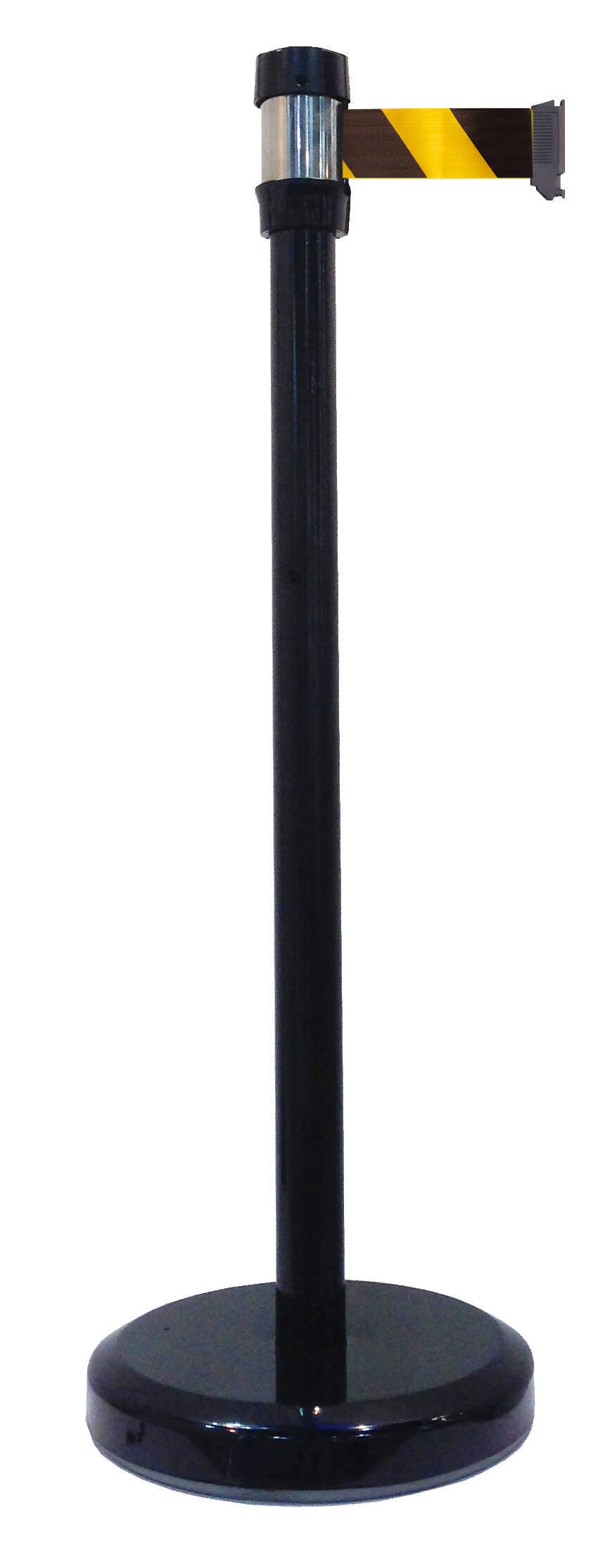 Poteau noir à sangle Ø 50 x H 980 mm – sangle coloris noir/jaune dimensions : l. 50 x L 2000 mm