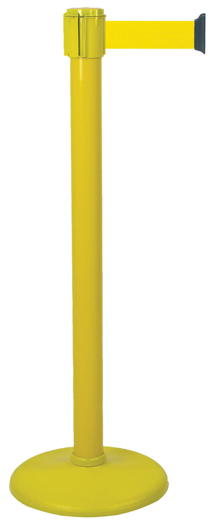 Poteau transway color avec tête à sangle sur socle – sangle : L 3 m x l. 50 mm – coloris tube/socle : jaune – coloris sangle : jaune