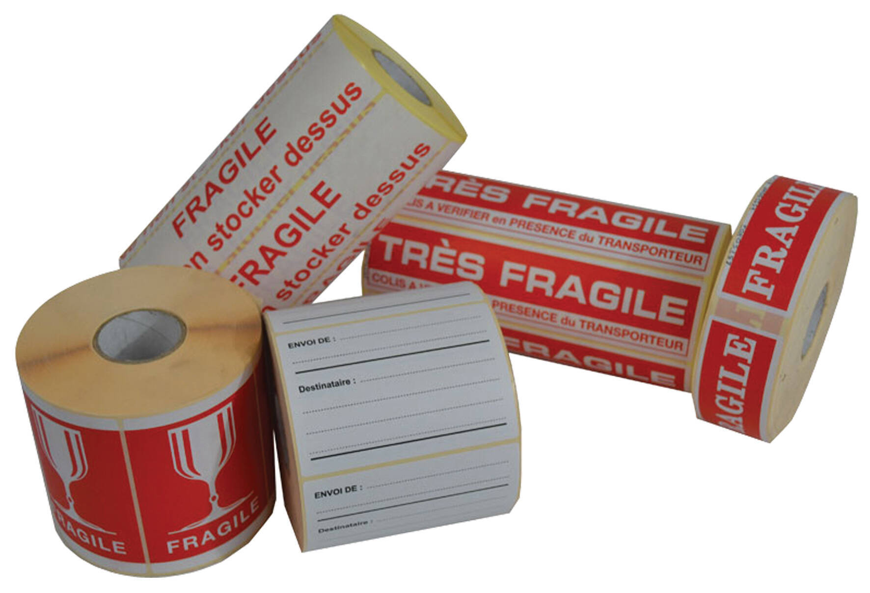 Étiquette de sécurité en rouleau de 1000 étiquettes – impression : très fragile, vérifier en présence du transporteur