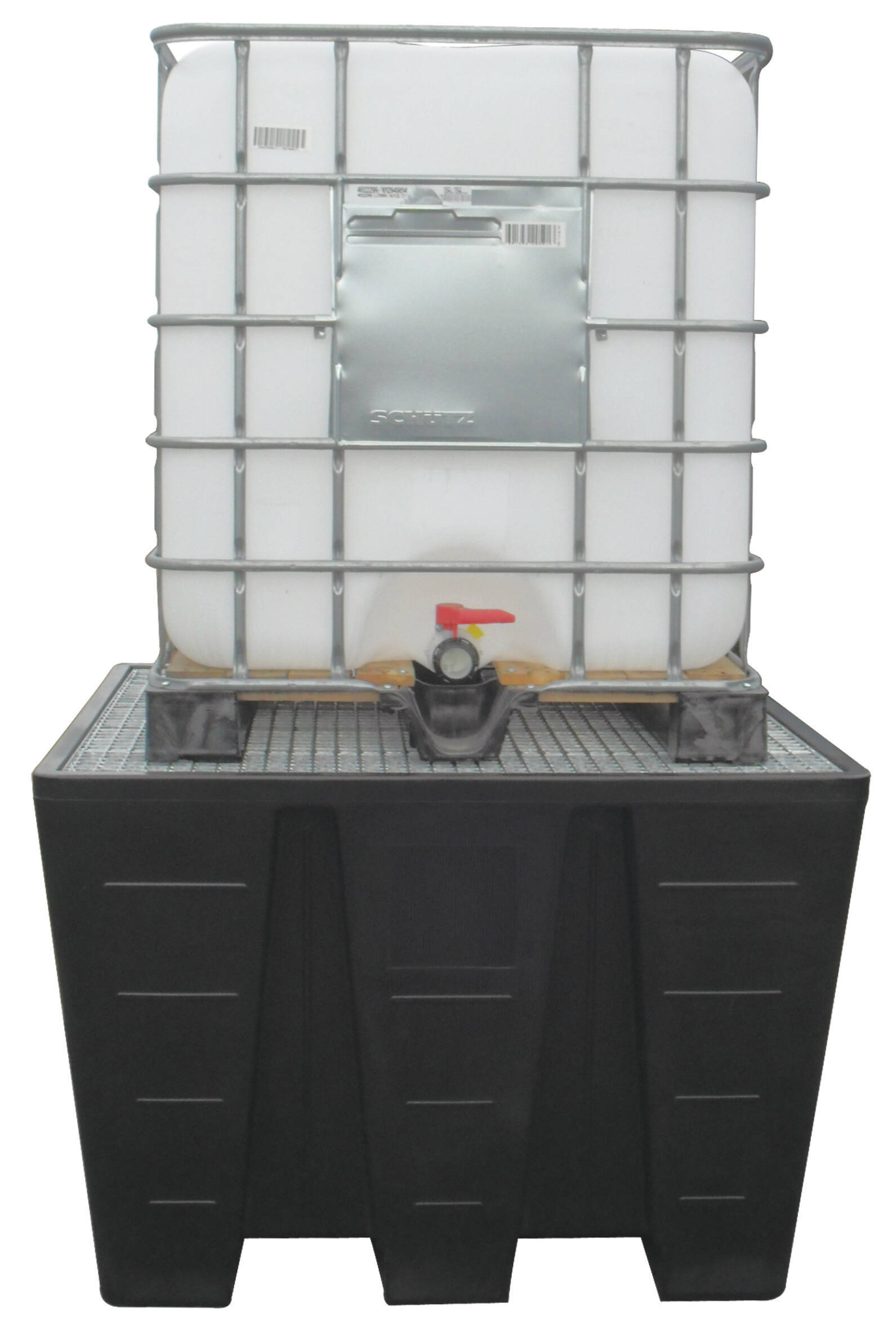 Bac de r?tention en poly?thyl?ne haute densit? recycl? r?g?n?r? pour 1 IBC – dimensions : L 1300 x l. 1300 x H 900 mm – volume de r?tention 1100 litres