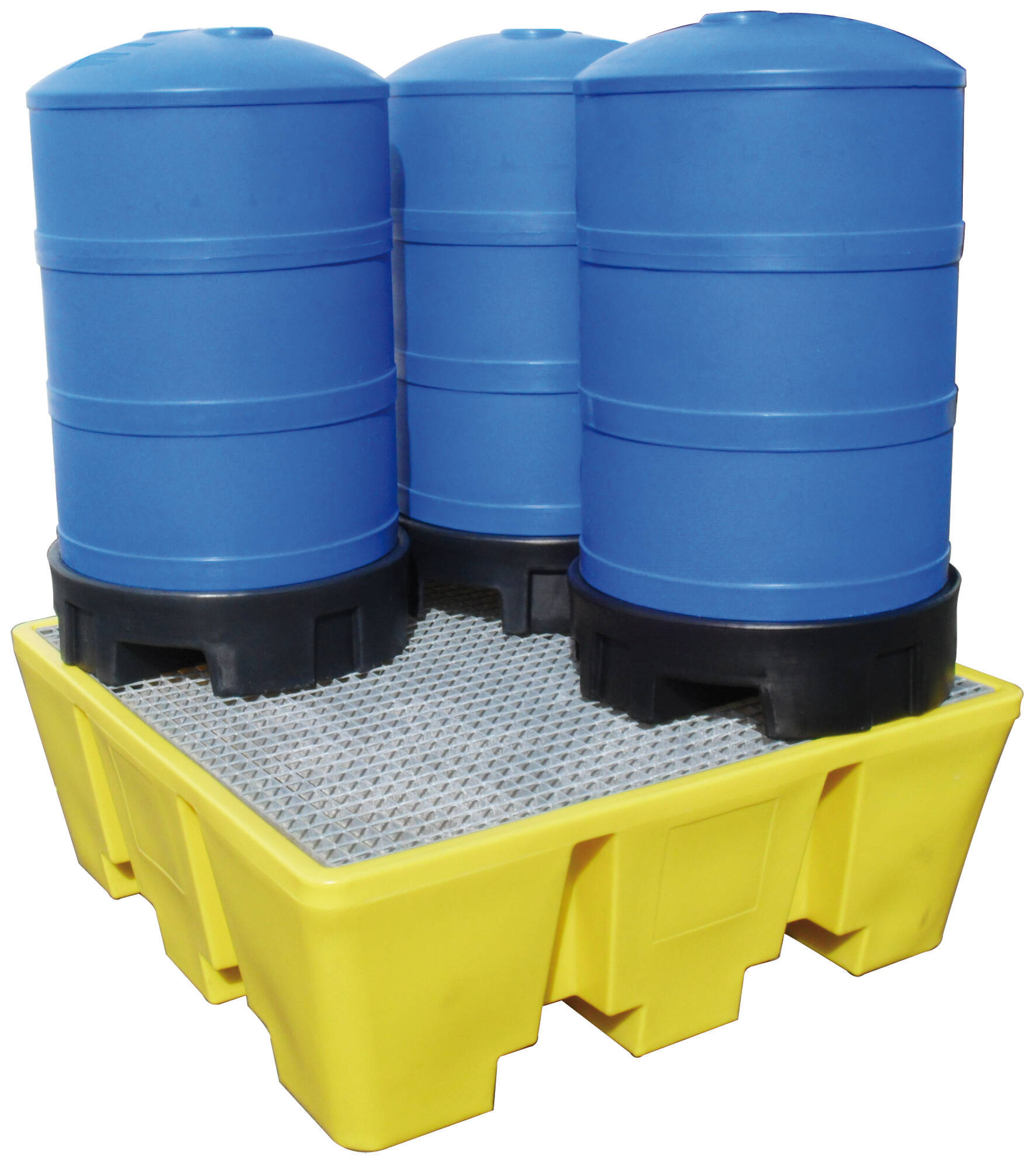 Bac de r?tention avec caillebotis acier galvanis? 4 f?ts – dimensions : L 1290 x l. 1290 x H 470 mm