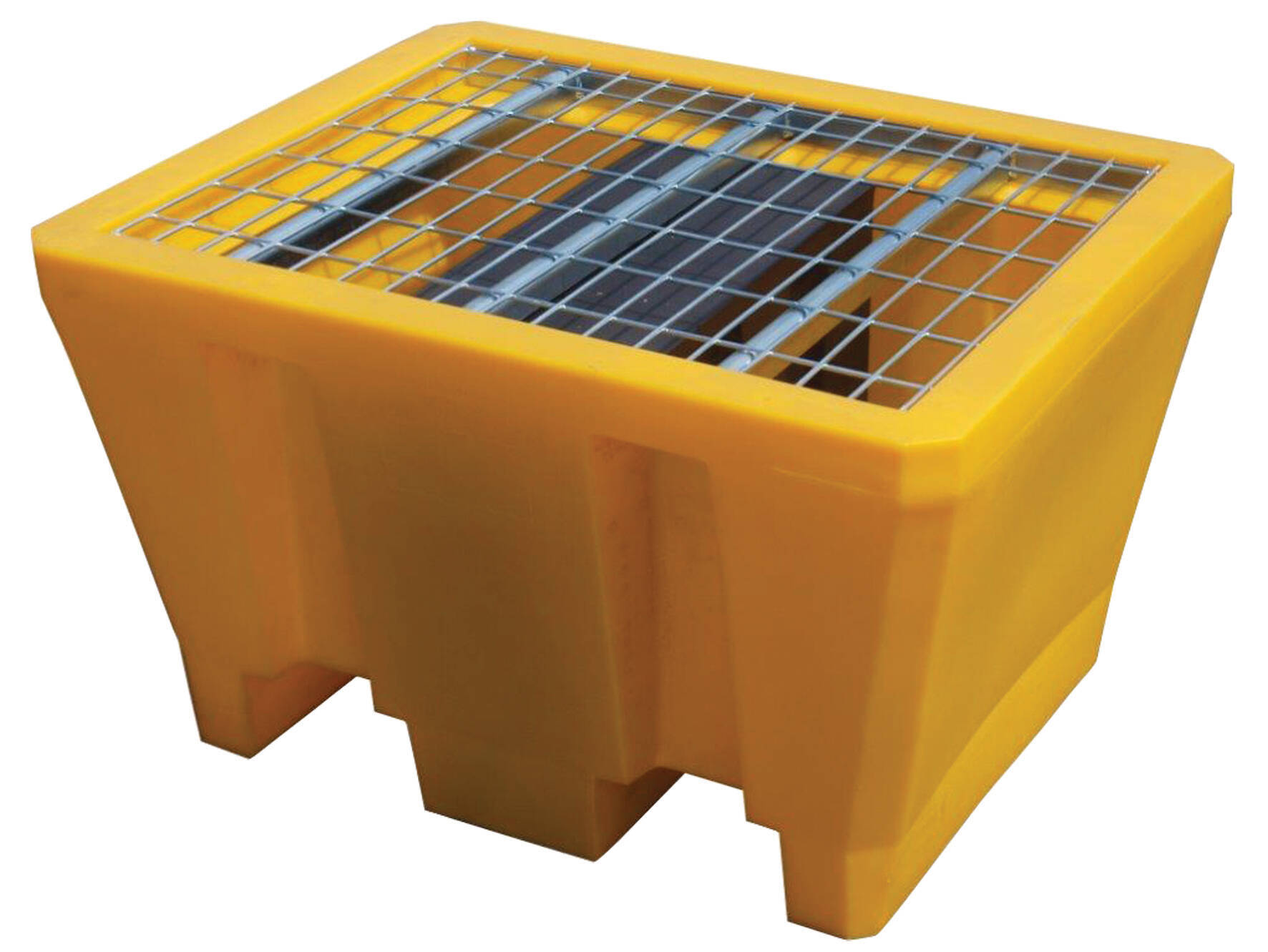 Bac de rétention avec caillebotis en fil d’acier renforcé capacité 1 fût volume de rétention : 225 litres – dimensions : L 925 x l. 755 x H 555 mm