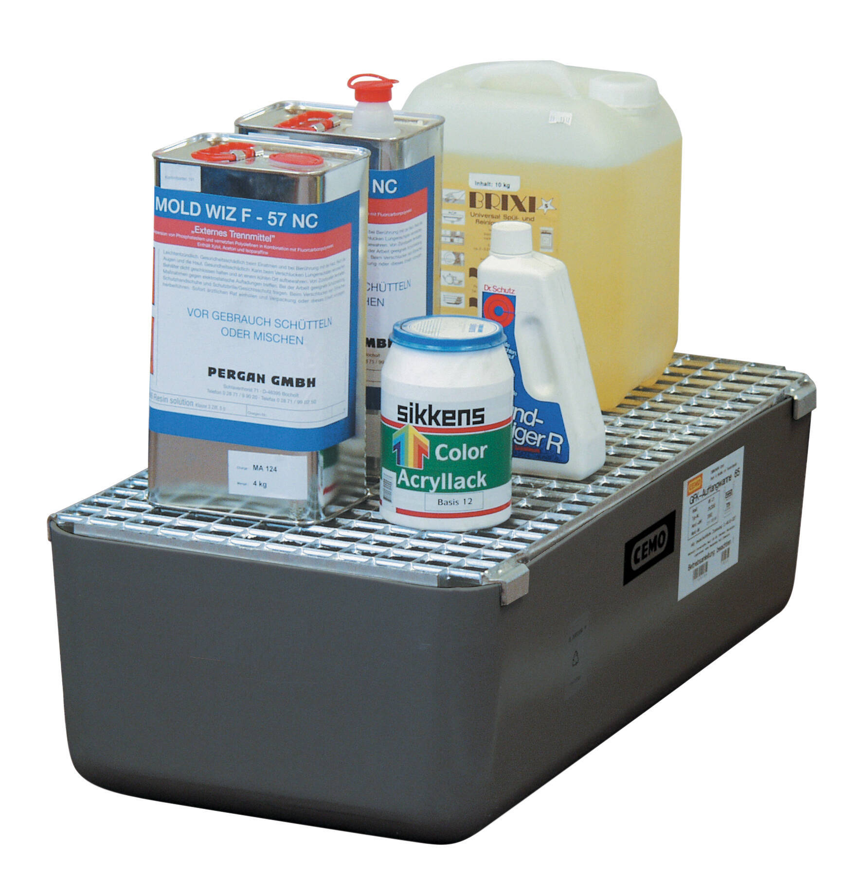 Bac de r?tention en polyester avec caillebotis volume de r?tention : 65 litres – dimensions : L 820 x l. 420 x H 240 mm