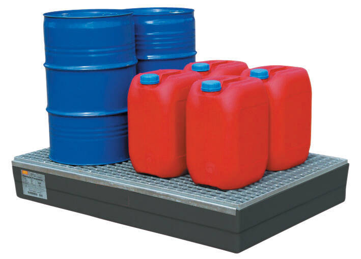 Bac de r?tention en polyester avec caillebotis volume de r?tention : 140 litres – dimensions : L 1200 x l. 800 x H 190 mm