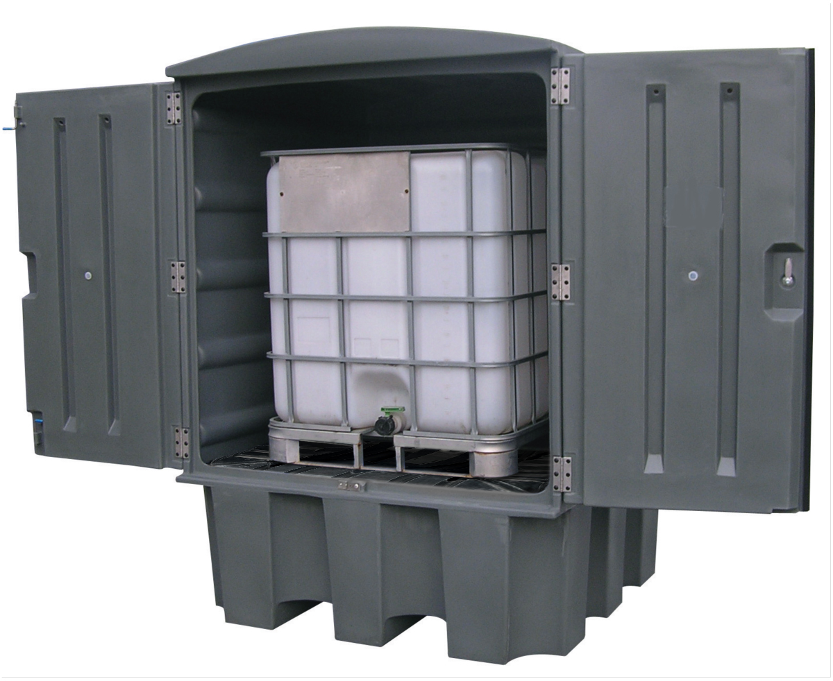 Conteneur de r?tention PEHD – Passage de fourches sur 2 c?t?s – Capacit? 1 IBC – Volume de r?tention : 1000 litres – Dimensions : L 1500 x l. 1500 x H 2200 mm