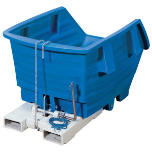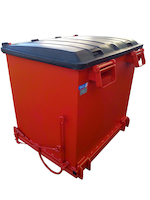 Benne à fond ouvrant avec couvercle en PEBD sur roues volume : 1200 litres – dimensions : L 1250 x l. 1070 x H 1455 mm