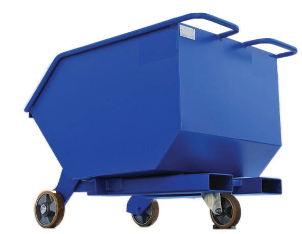 Mini benne à basculement progressif volume : 260 litres – dimensions côté frontal/latéral x H : 795/960 x 710 mm