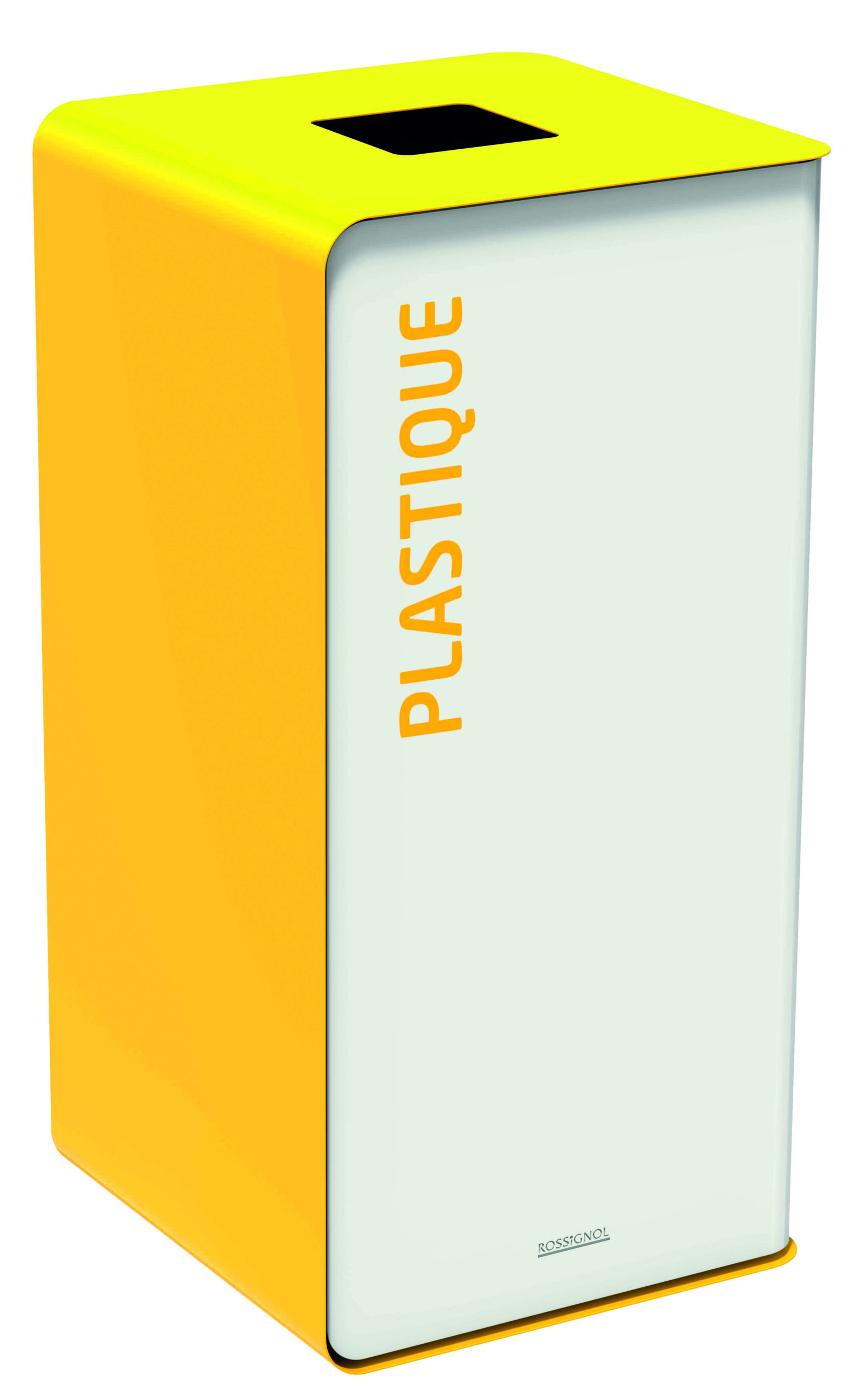 Borne de tri CUBATRI capacit? : 75 litres marquage plastique – dimensions : L 380 x l. 380 x H 760 mm – coloris porte : Blanc corps et couvercle Jaune