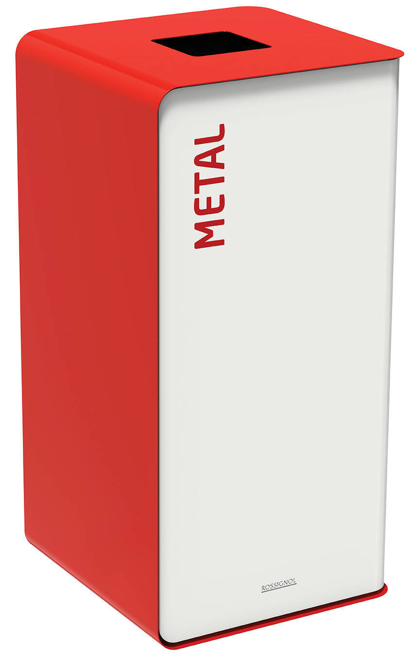 Borne de tri CUBATRI capacit? : 75 litres marquage m?tal – dimensions : L 380 x l. 380 x H 760 mm – coloris porte : Blanc corps et couvercle Bleu Rouge