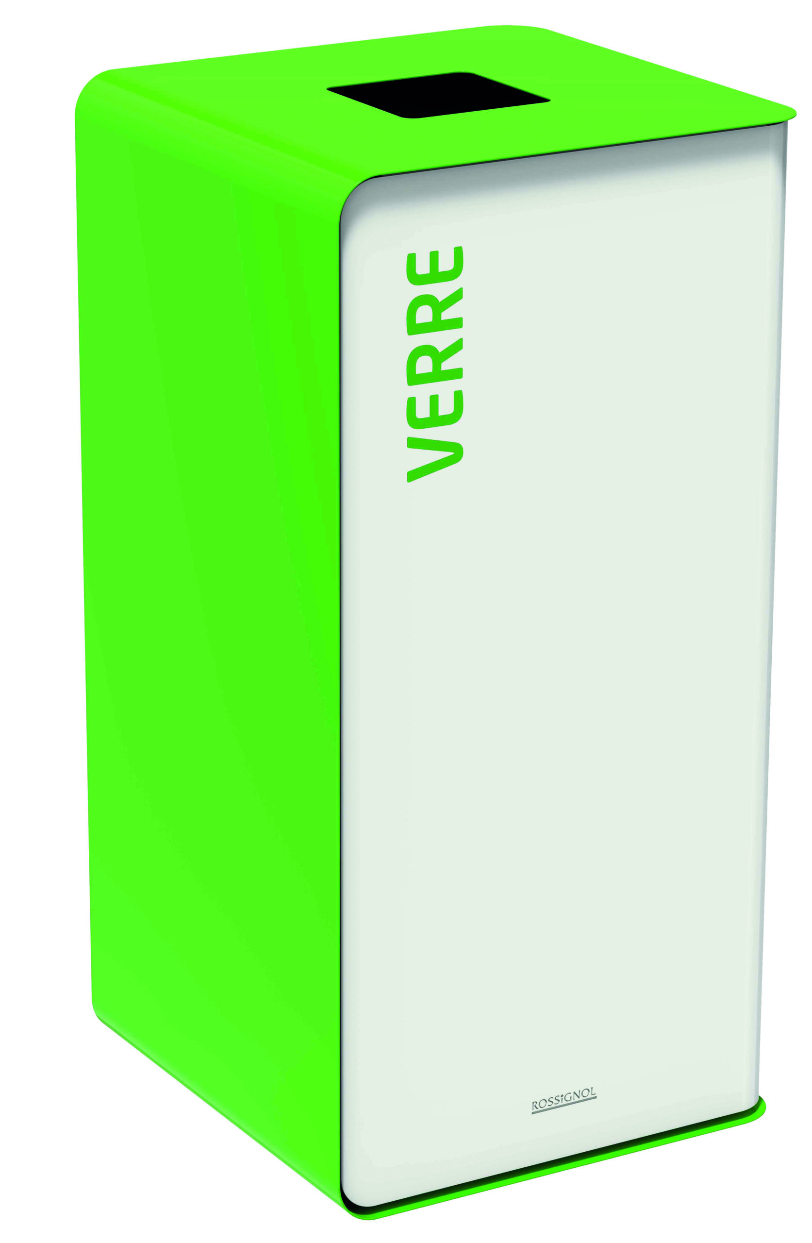 Borne de tri CUBATRI capacité : 75 litres marquage verre – dimensions : L 380 x l. 380 x H 760 mm – coloris porte : blanc corps et couvercle vert