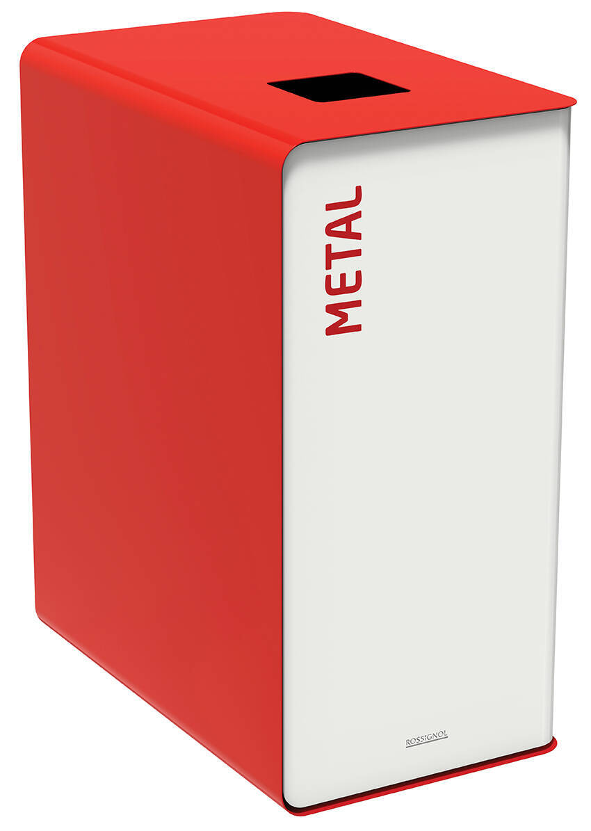 Borne de tri CUBATRI capacit? : 90 litres marquage m?tal – dimensions : L 620 x l. 380 x H 760 mm – coloris porte : Blanc corps et couvercle Rouge