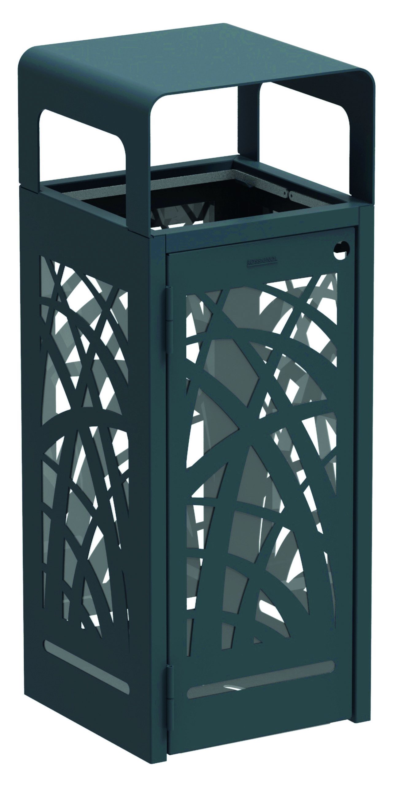 Corbeille anti-nuisibles CYBEL sans cendrier capacité : 110 litres – dimensions : L 425 x P 425 x H 990 mm – coloris corps/façade : anthracite/anthracite