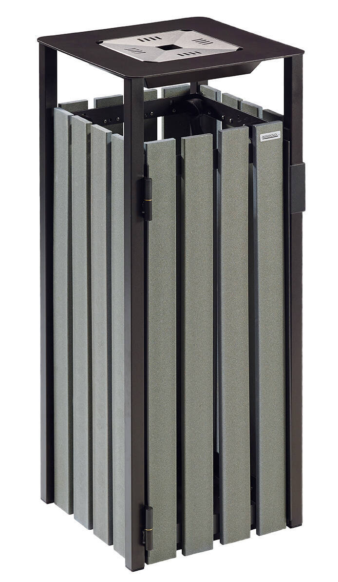 Corbeille EDEN ?TIK ? poser ou ? fixer au sol en acier capacit? : 110 litres – dimensions : L 425 x P 425 x H 990 mm – avec cendrier