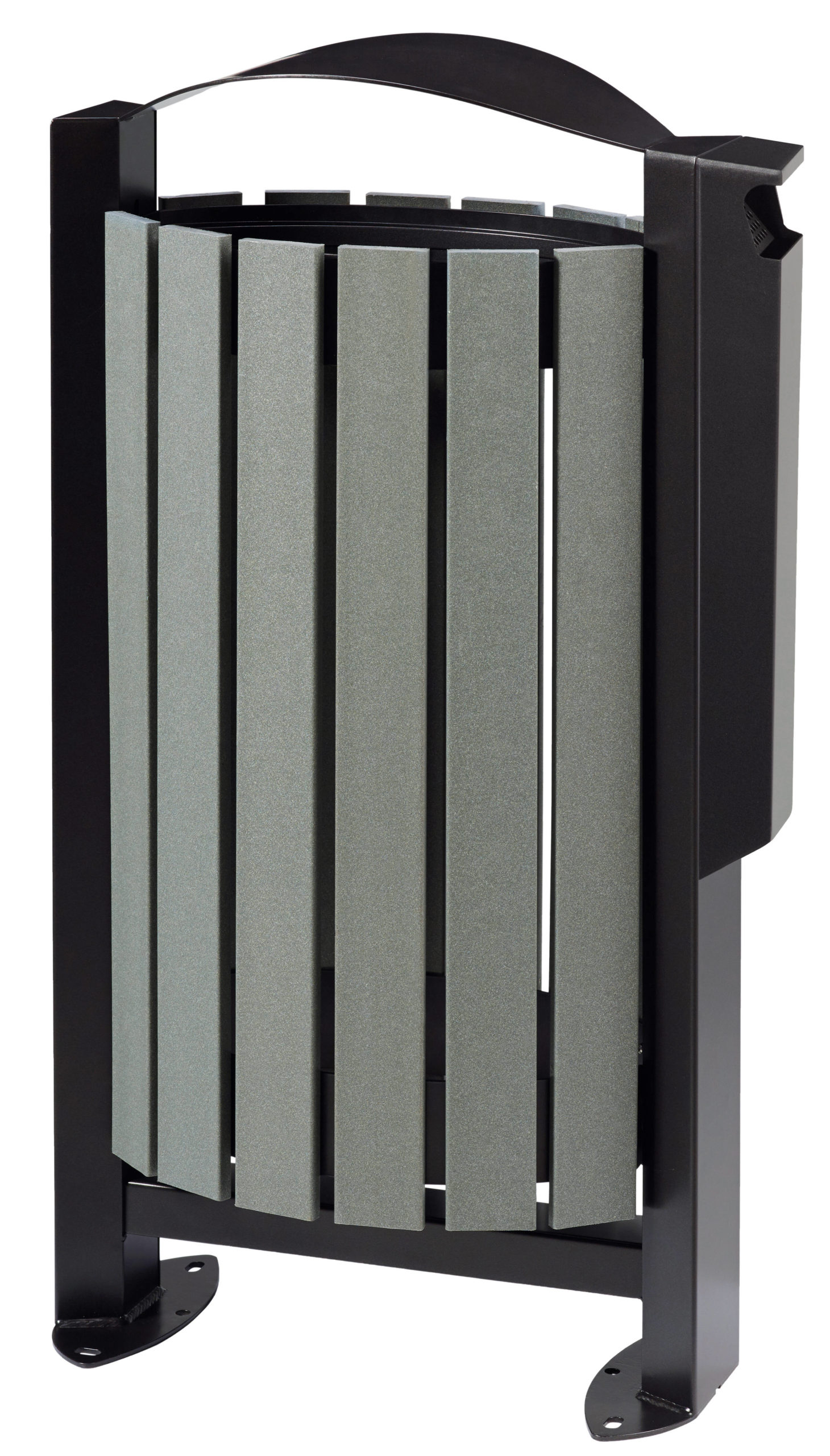 Corbeille ARKEA ÉTIK sur pieds avec lattes structure en acier capacité 60 litres – dimensions : L 528 x P 272 x H 1015 mm – coloris gris manganèse – avec cendrier 3 litres