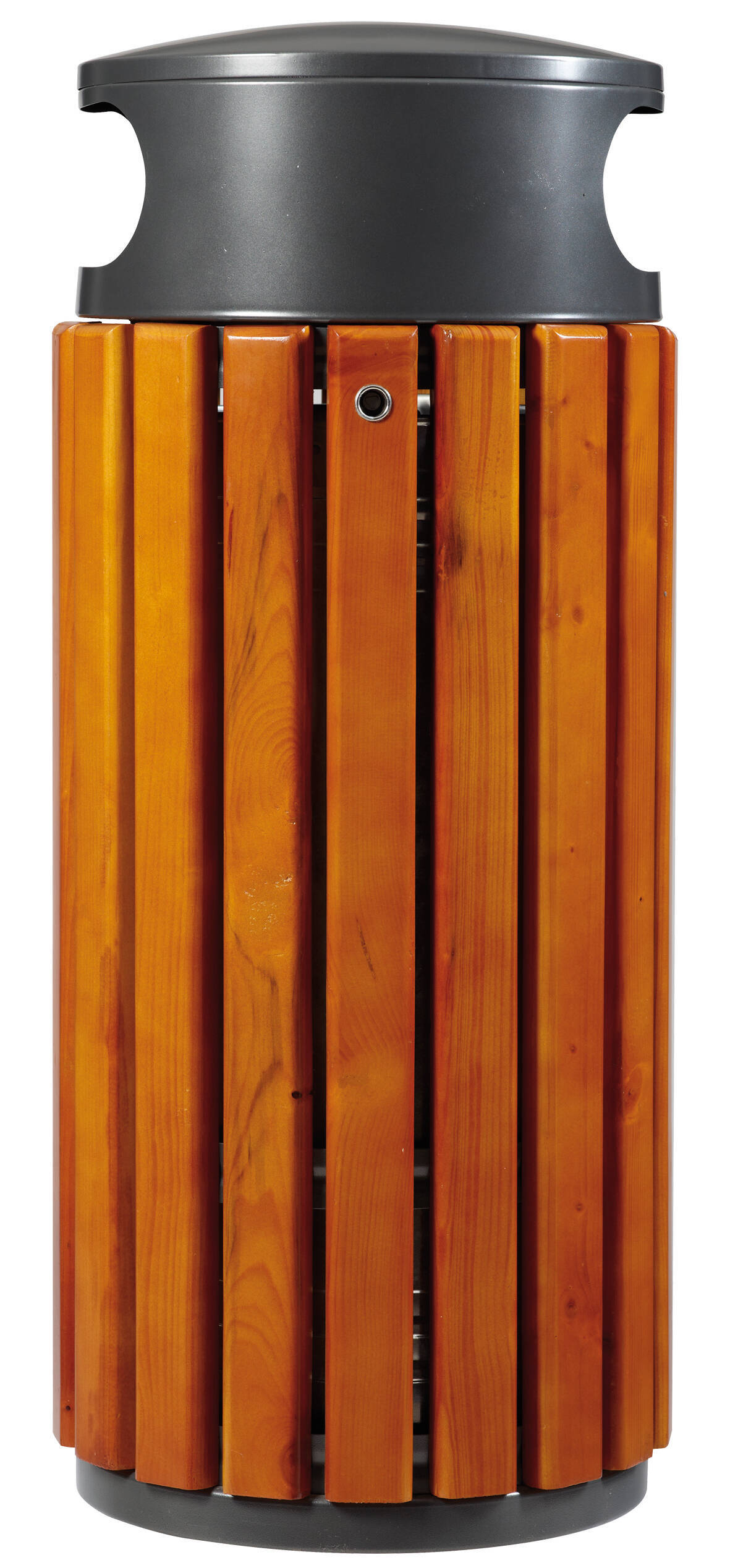 Corbeille Zeno bois/métal capacité : 60 litres – dimensions : Ø 400 x H 1000 mm – coloris bois/gris manganèse
