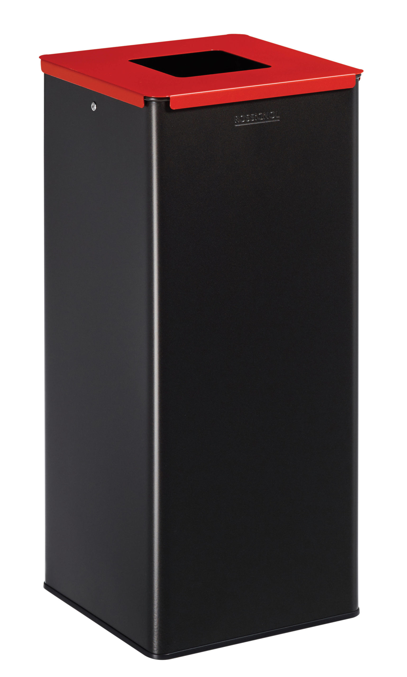 Poubelle de tri CALITRI en acier poudr? anti-UV capacit? : 40 litres – dimensions : L 270 x l. 270 x H 592 mm – coloris de couvercle : Rouge signalisation