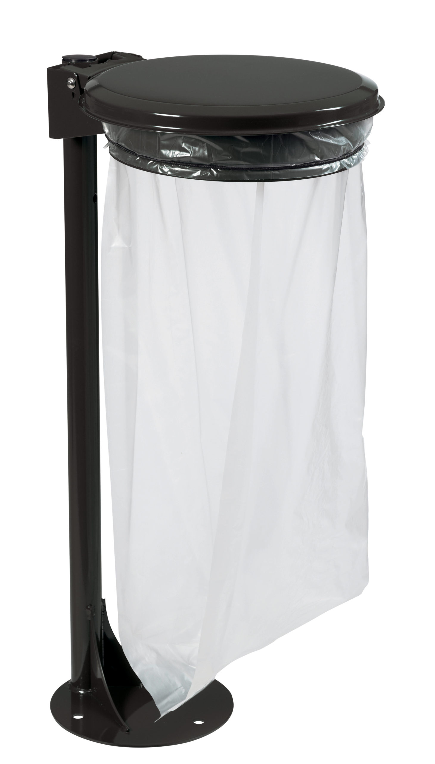 Support sac avec couvercle sur poteau en acier capacité de sac : 110 litres – coloris gris manganèse
