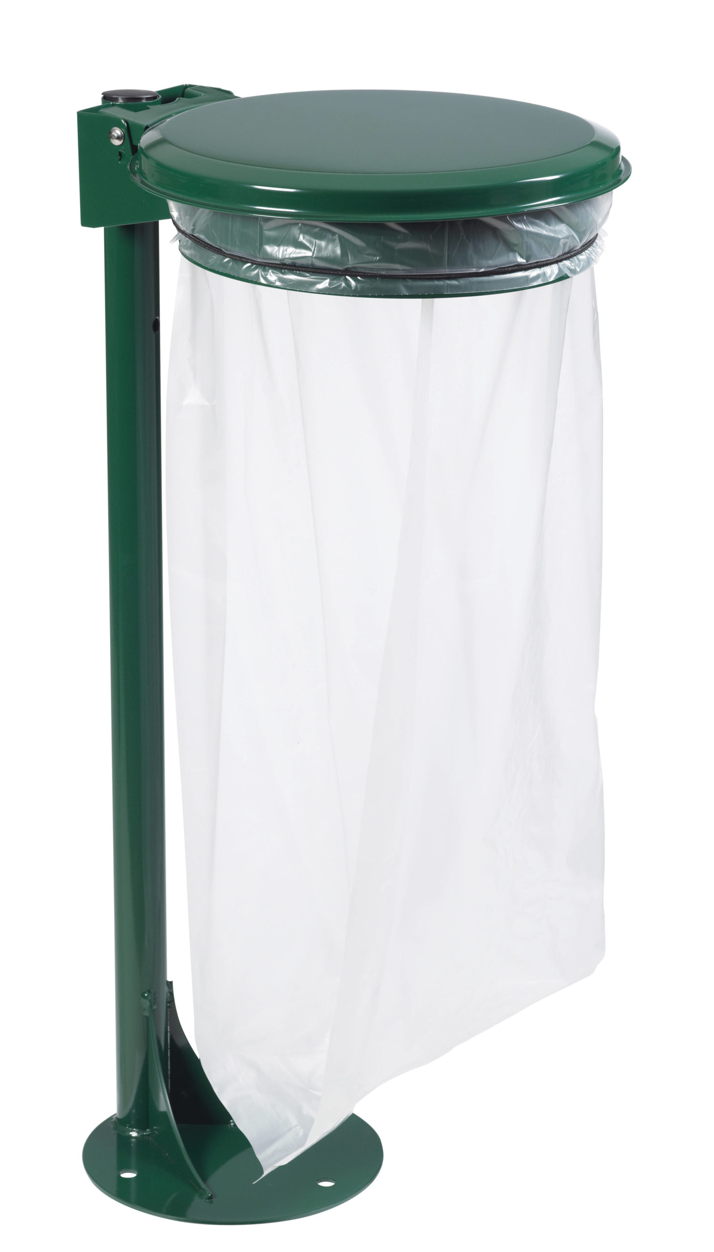 Support sac avec couvercle sur poteau en acier capacité de sac : 110 litres – coloris vert mousse