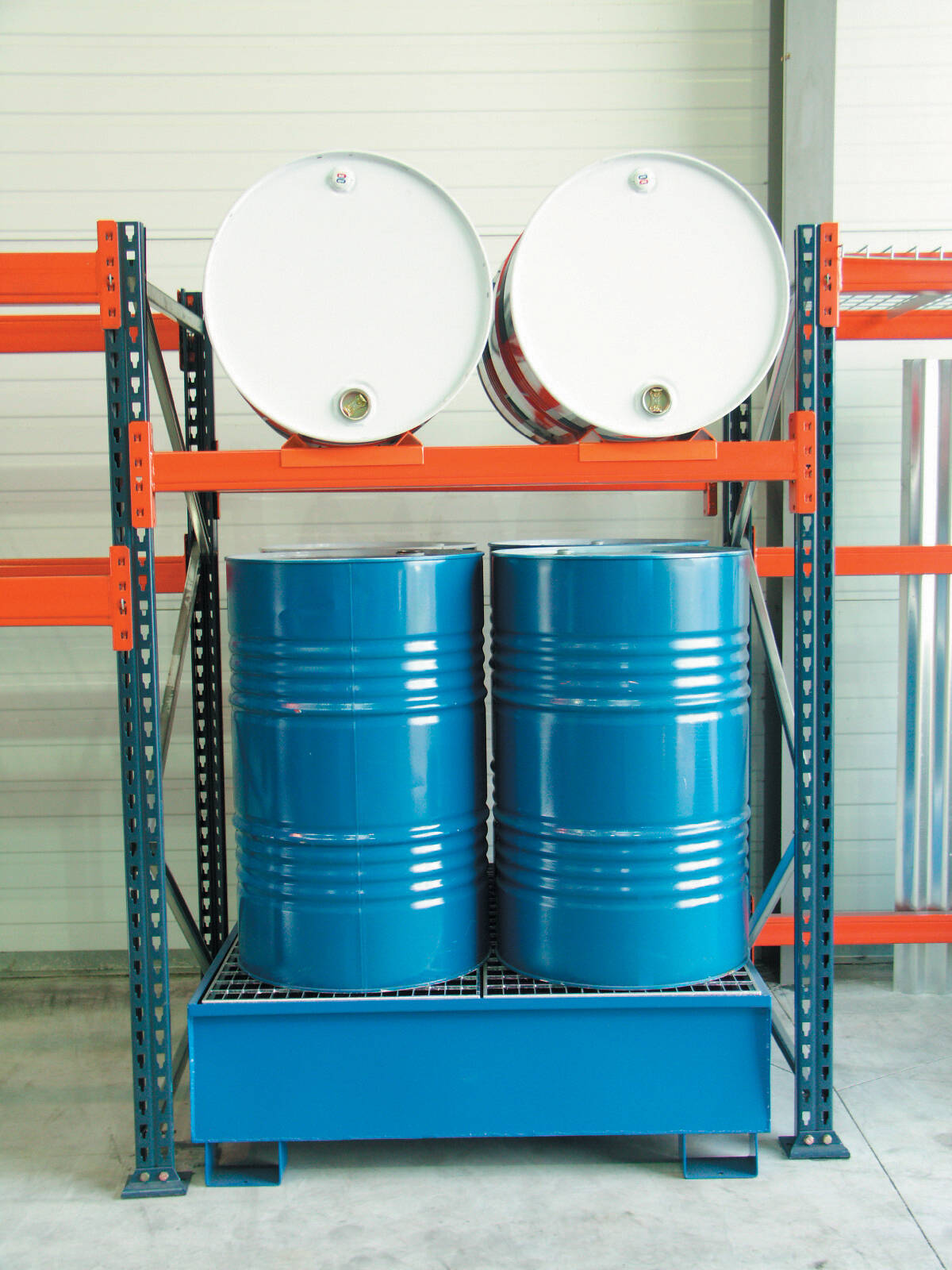 Rayonnage semi-lourd pour fûts avec rétention – Départ