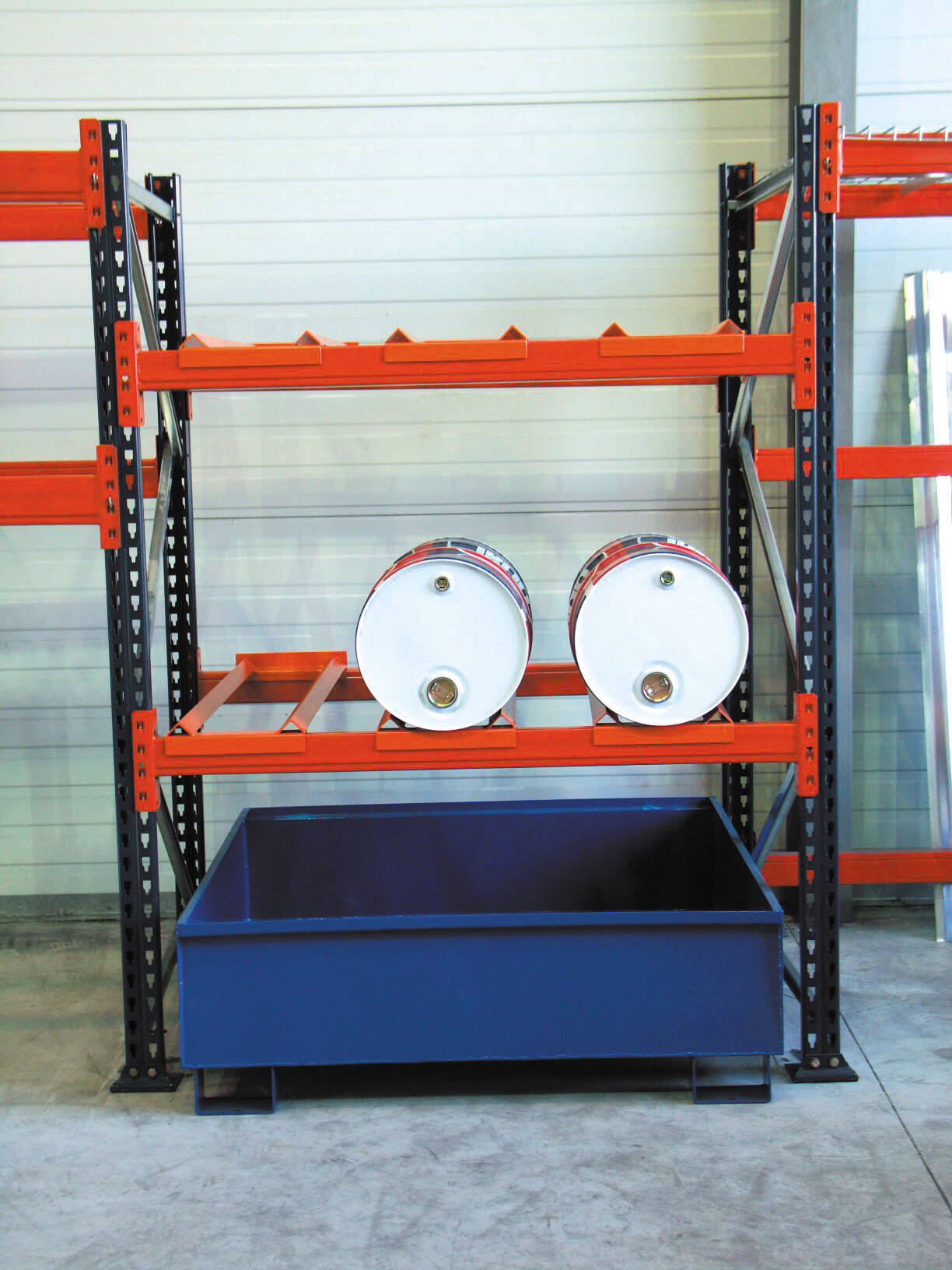 Rayonnage semi-lourd pour 6 fûts de 60 litres avec rétention – 440 litres -L: 1350 x P: 1100 x H: 2000 mm – élément suivant