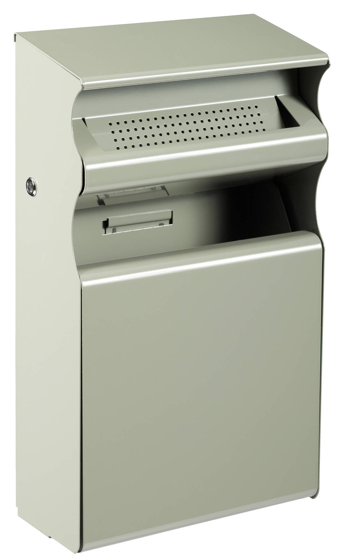 Cendrier corbeille murale capacité : 2/15 l. coloris corps : gris ciment – dimensions : L 300 x P 140 x H 630 mm