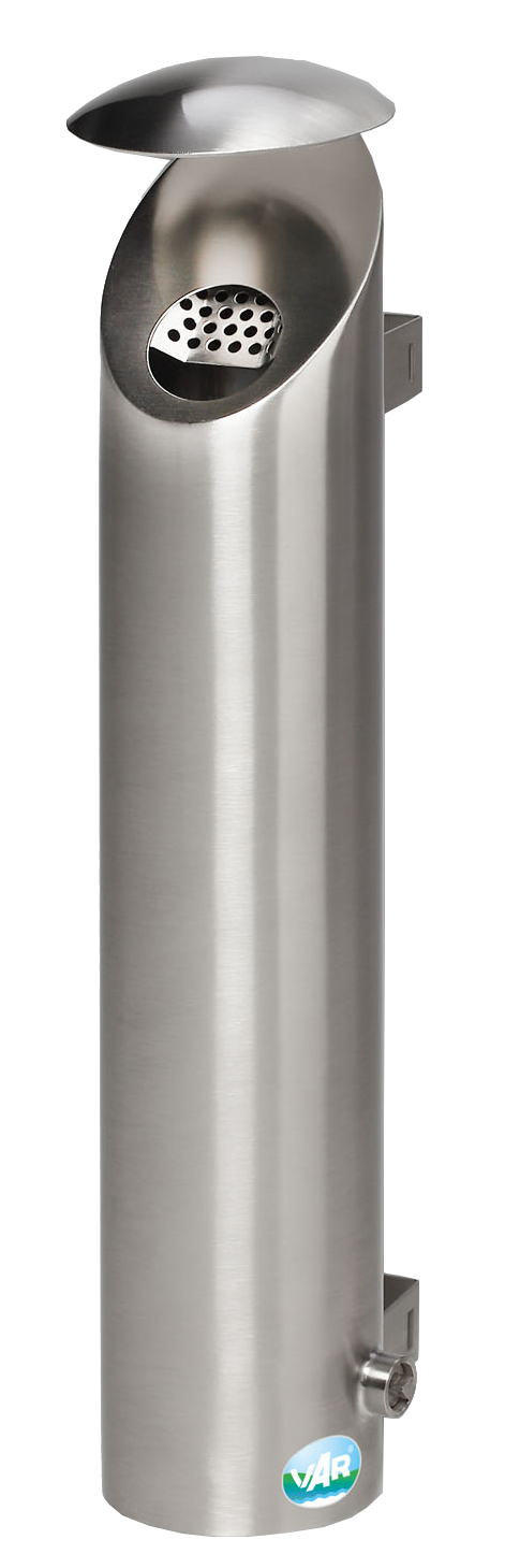 Cendrier inox anti-feu capacit? : 2,4 l. fixation murale coloris corps : inox bross? – dimensions : ? 180 x H 530 mm