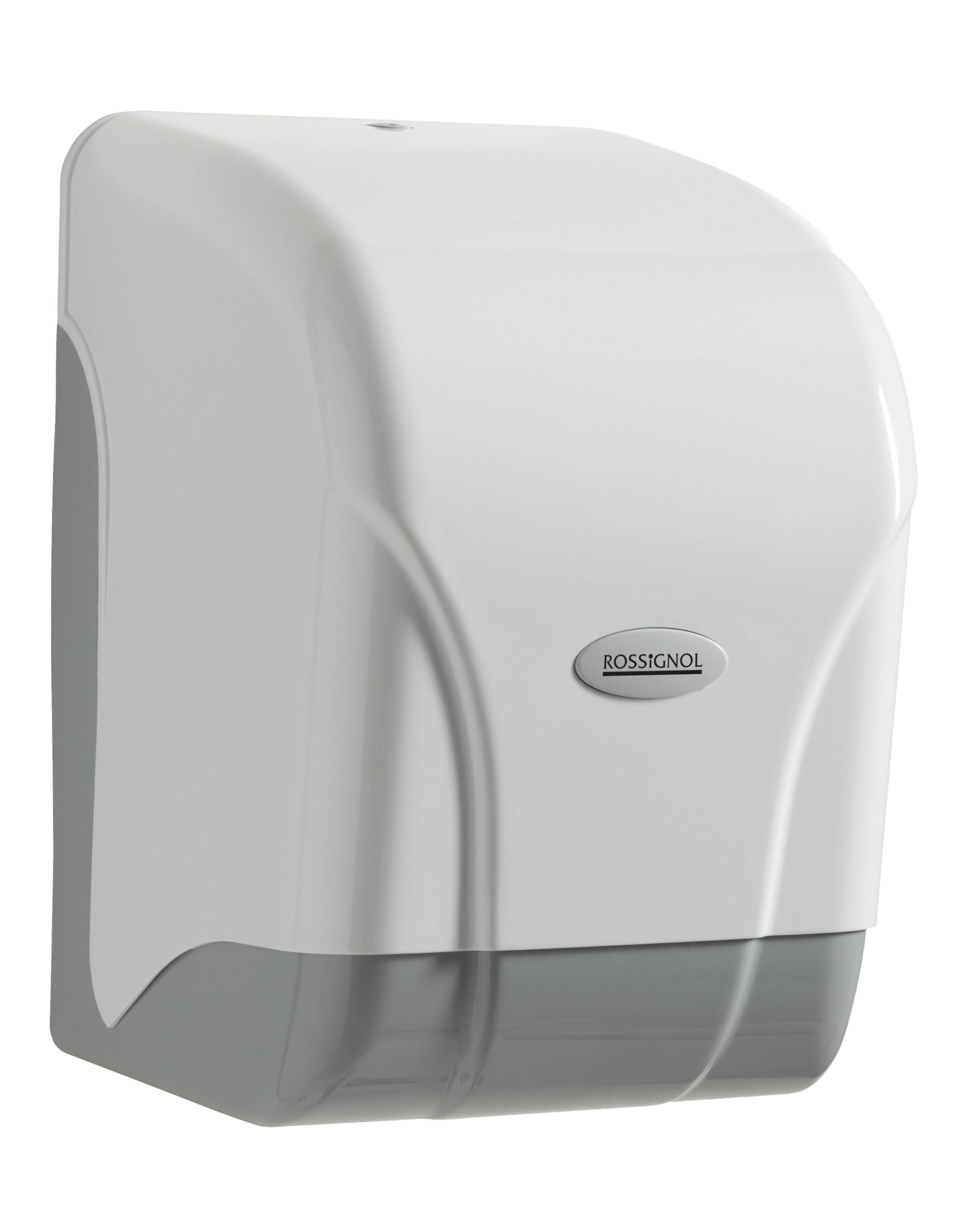Distributeur d’essuie-mains d?vidage central pour rouleaux de 450 formats – dimensions : L 255 x P 260 x H 370 mm – coloris : Blanc