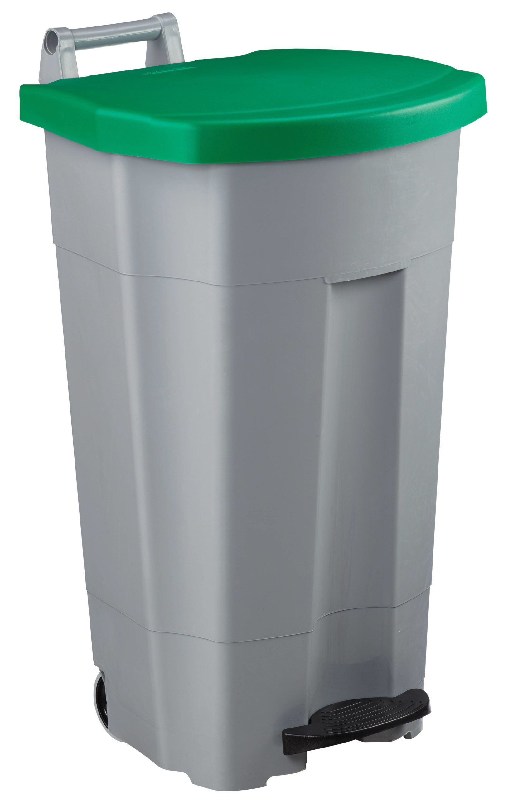 Poubelle à pédale capacité 90 litres en polyéthylène – dimensions L 510 x P 510 x H 895 mm – coloris corps/couvercle : gris/vert