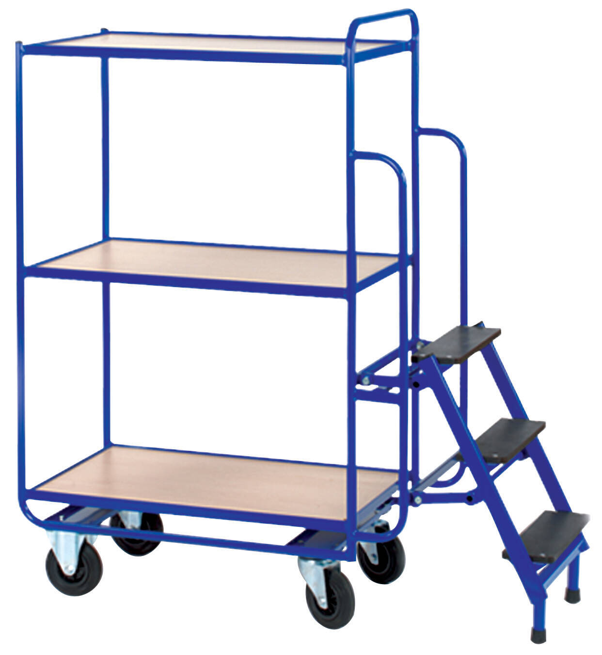 Chariot escabeau charge : 300 kg – 3 plateaux – escabeau 3 marches – dimensions : L 1280/1465 x l. 620 x H 1630 mm