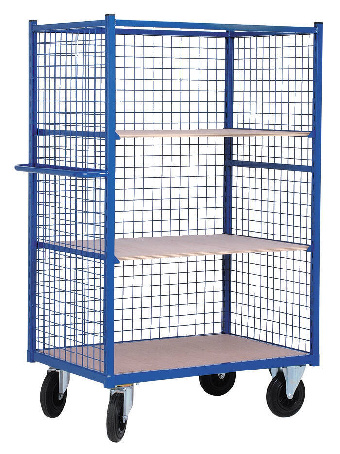 Chariot tubulaire 3 côtés grillagés – 2 étagères – 1370 x 825 x 1735 mm – charge 500 kg