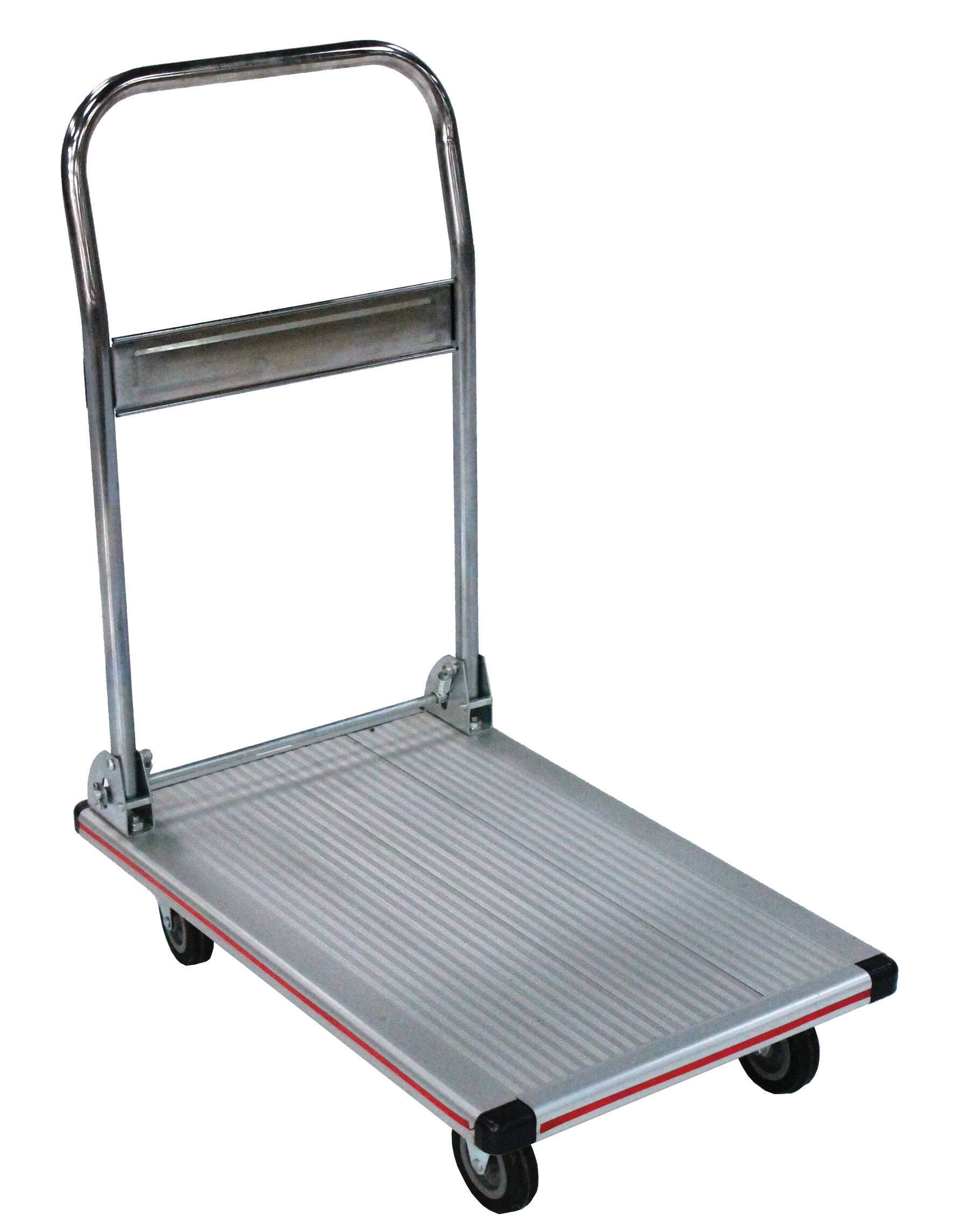 Chariot pliant aluminium charge 150 kg dossier rabattable H 890 mm – dimensions plateau : L 750 x l. 480 mm