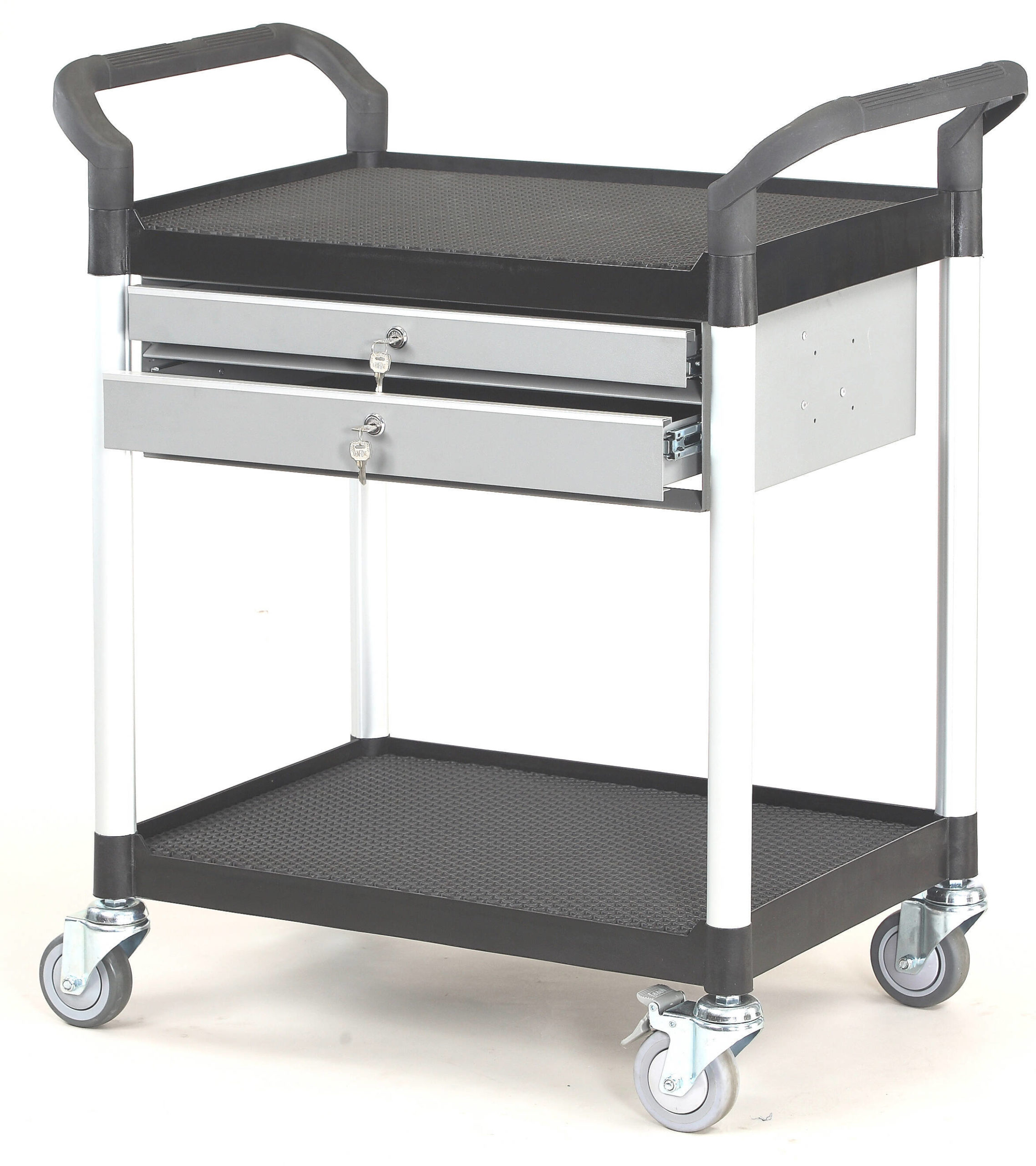 Chariot polyvalent en aluminium extrud? avec 2 plateaux et 2 tiroirs charge : 250 kg – dimensions : L 850 x l. 480 x H 1000 mm