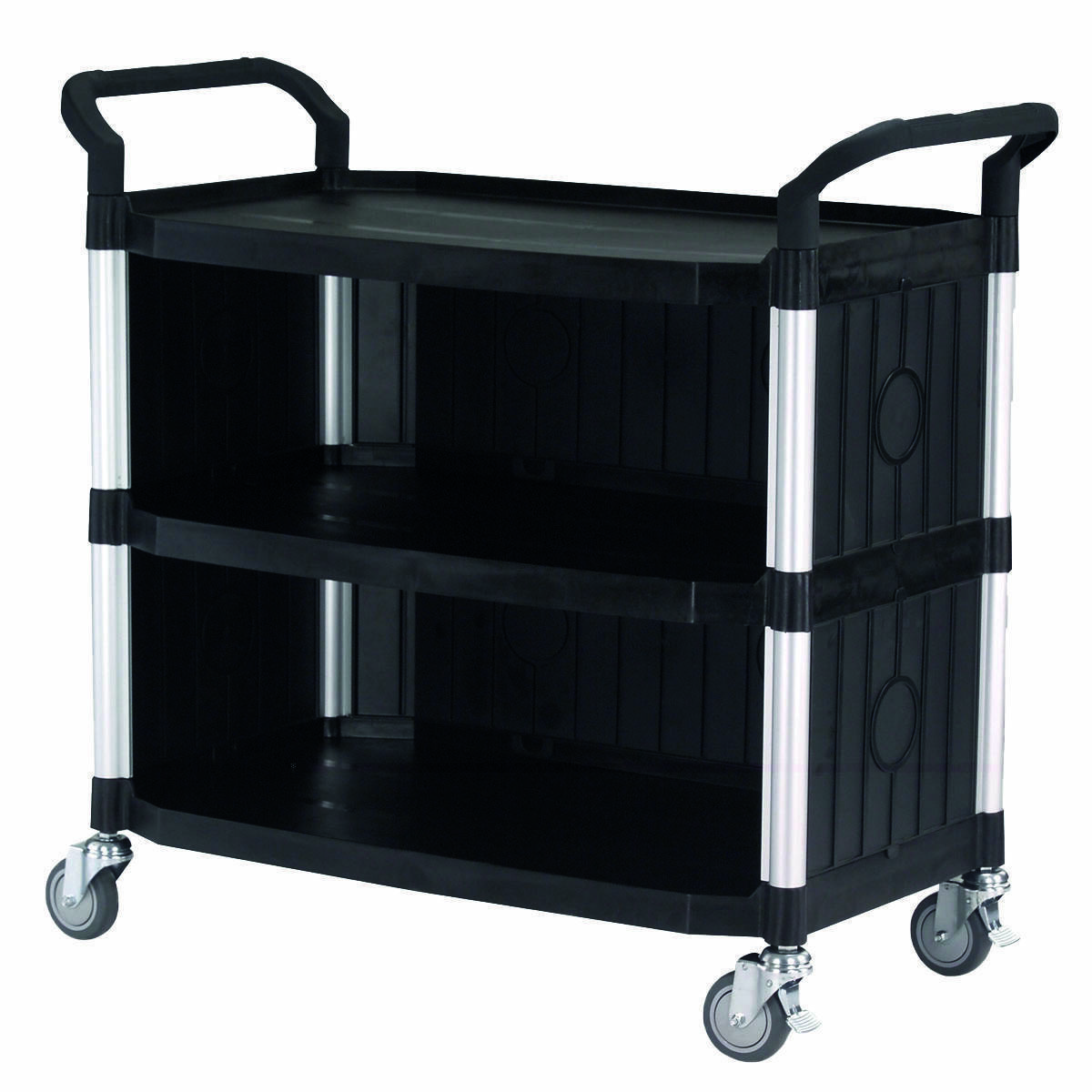 Chariot polyvalent en aluminium extrud? 3 plateaux avec double caisson ouvert sur la longueur charge : 250 kg – dimensions : L 1100 x l. 520 x H 1020 mm