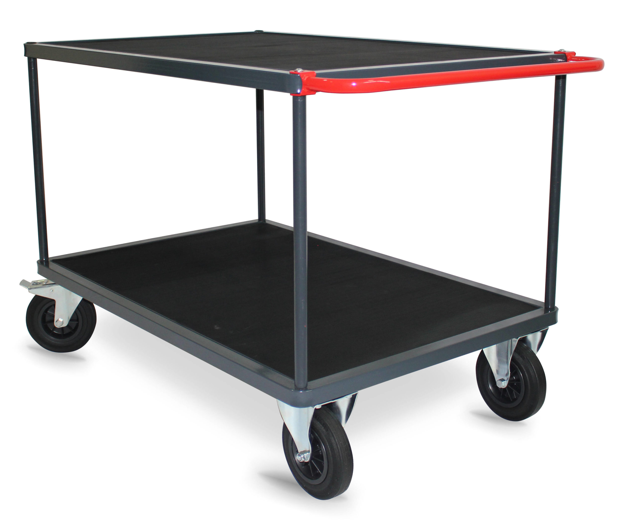 Servante 2 plateaux – Charge : 650 kg – Plateau bois + caoutchouc stri? – Dimensions hors tout : L x 1313 x l. 800 x H 880 mm