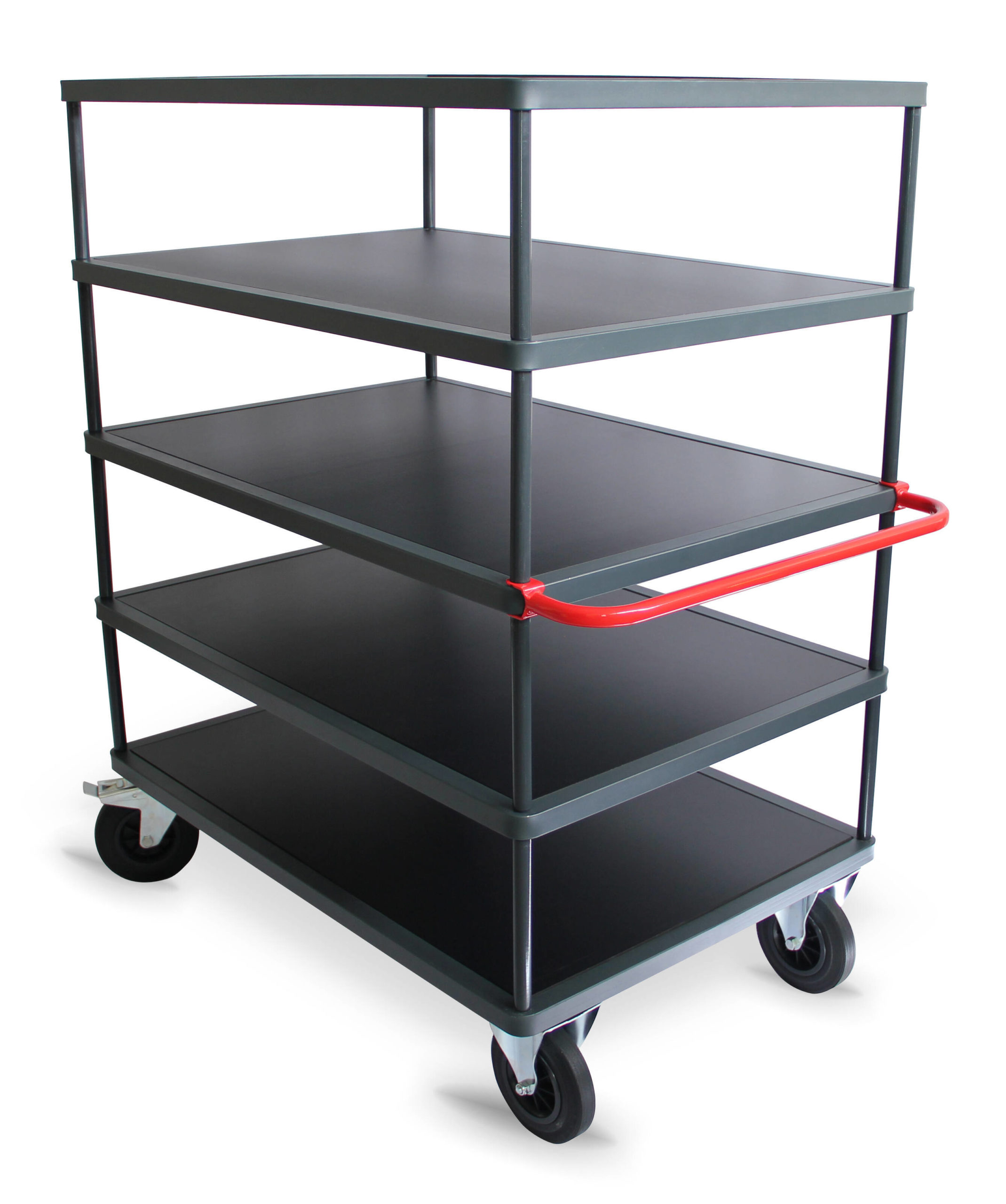 Servante 5 plateaux – Charge : 500 kg – Plateau bois stratifié noir – Dimensions hors tout : L x 913 x l. 600 x H 1470 mm