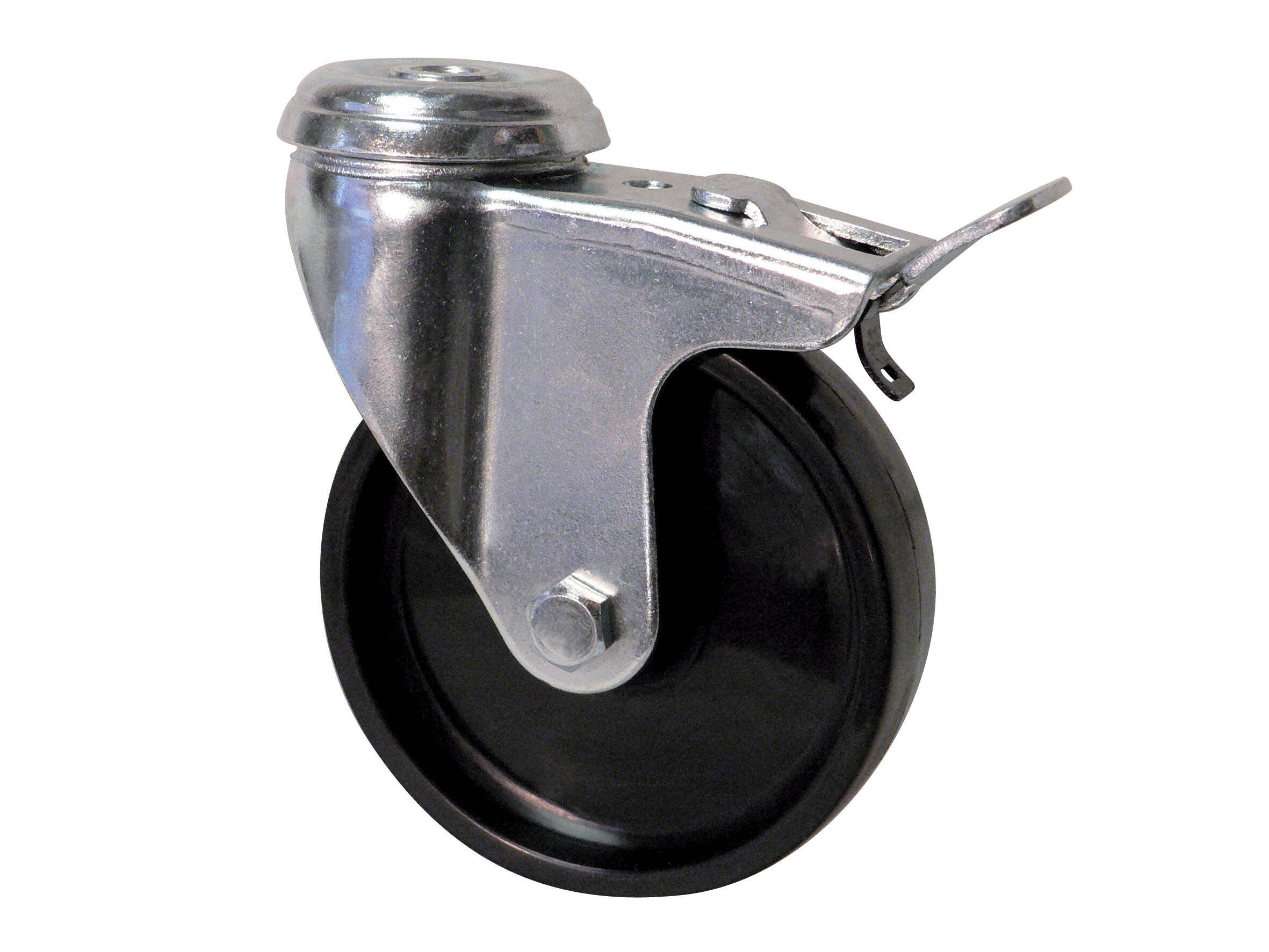 Roulette bandage caoutchouc avec frein platine à oeil